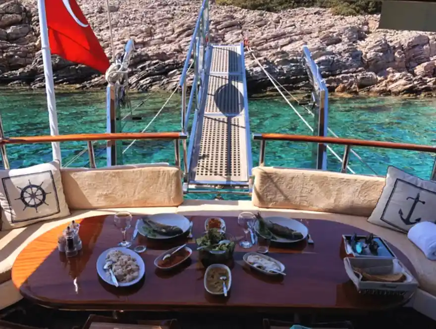 Rahat edebileceğiniz ve gün boyu güneşin tadını çıkarabileceğiniz oldukça yumuşak minderlerimizde Bodrum Tekne Turunu konforlu bir şekilde sürdürebilirsiniz. Sizin için özenle seçilen malzemelerle hazırlanan lezzetli ikramları Bodrum Guletimizde tadabilmek ve keyifli bir yolculuğa çıkmak için Artemis 2'yi keşfedin.Arayın, Yerinizi Ayırtın, Ücreti Tur Günü Ödeyin!