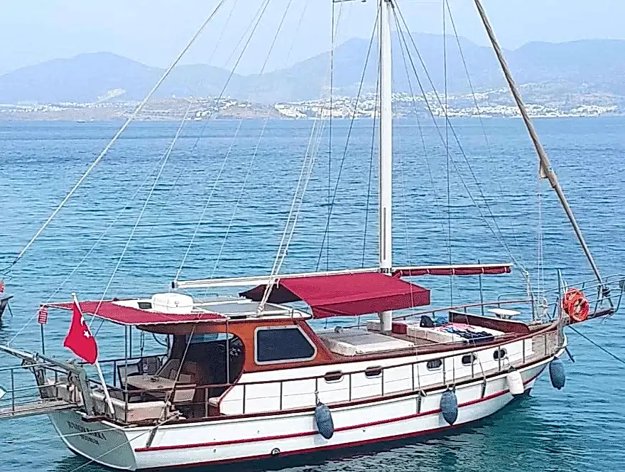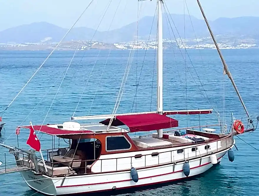 14 metre boyundaki Bodrum yapımı ahşap guletimiz yaz aylarının en konforlu ve eşsiz tatil seçeneğidir. Masmavi Bodrum Denizi ve muhteşem bakir koylarda bu ahşap guletimiz siz değerli müşterilerimize eşlik edecektir.