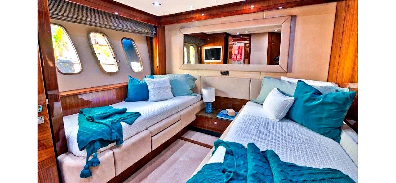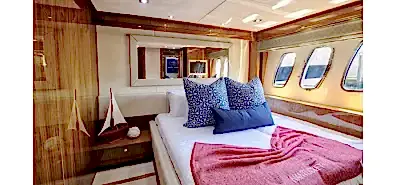 Günlük özel turların yanında, 4 kabini bulunan teknemiz 8 kişilik misafir grubu için kusursuz rahatlık sunan bir mavi yolculuk sunmaktadır. Bodrum tekne turu için oldukça lüks ve konforlu yatımızda prestijli bir tatil yaşacaksınız. Denizin huzurlu atmosferinde, güneşin keyfini çıkarırken, etkileyici manzaralar eşliğinde özel anlar yaşayabileceksiniz. Gün batımı programlarımız da ise romantik, sakin ve harikulade bir atmosfer sunarak, siz misafirlerimiz için göz alıcı bir ortam sağlamaktadır.