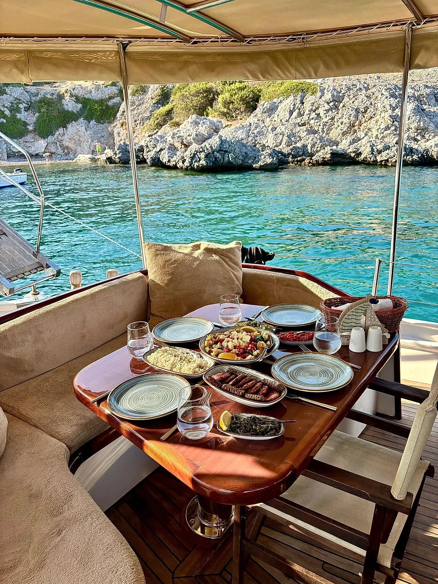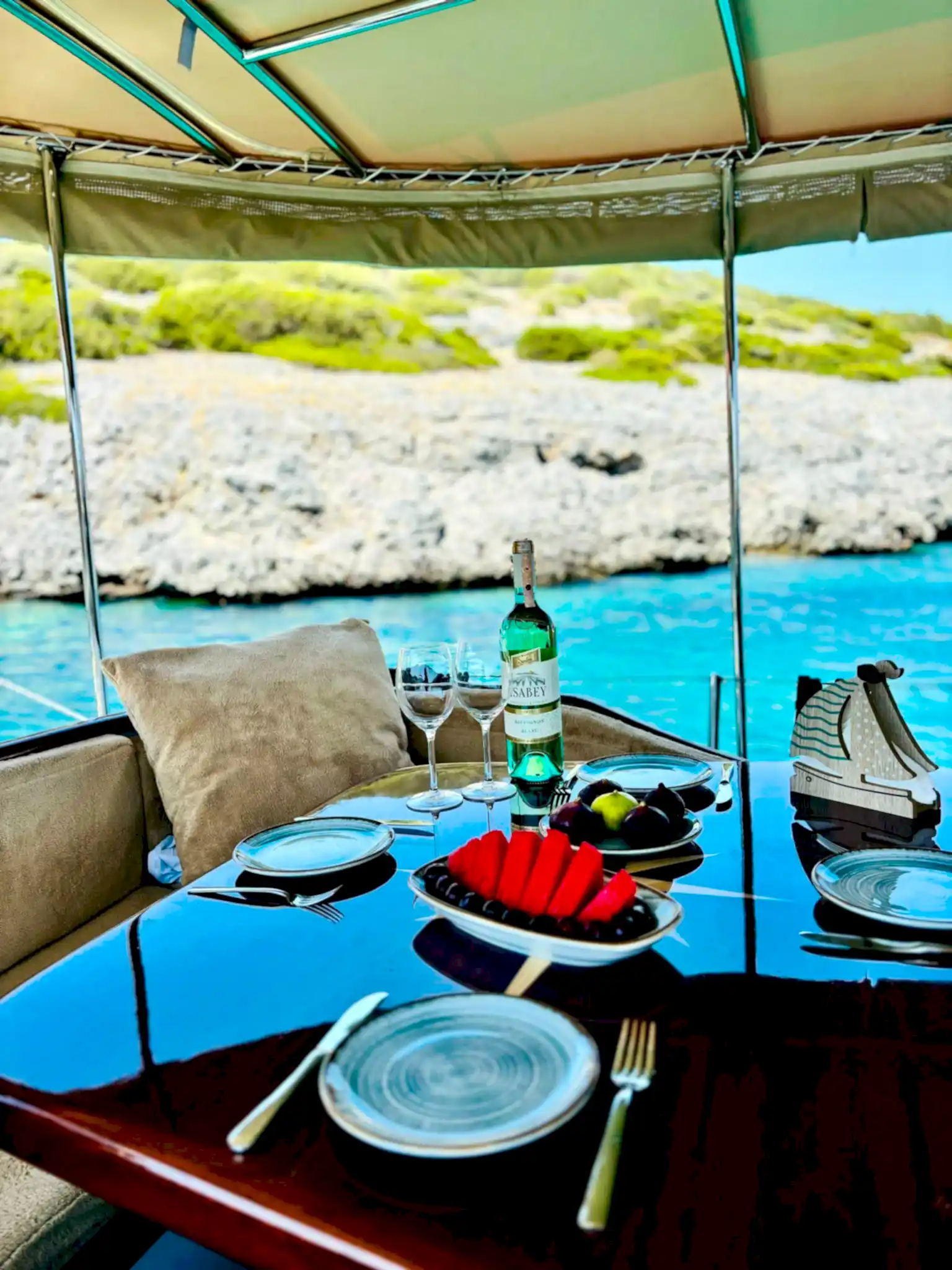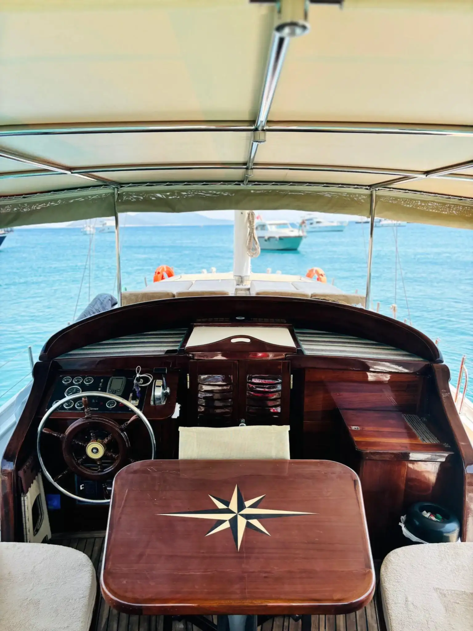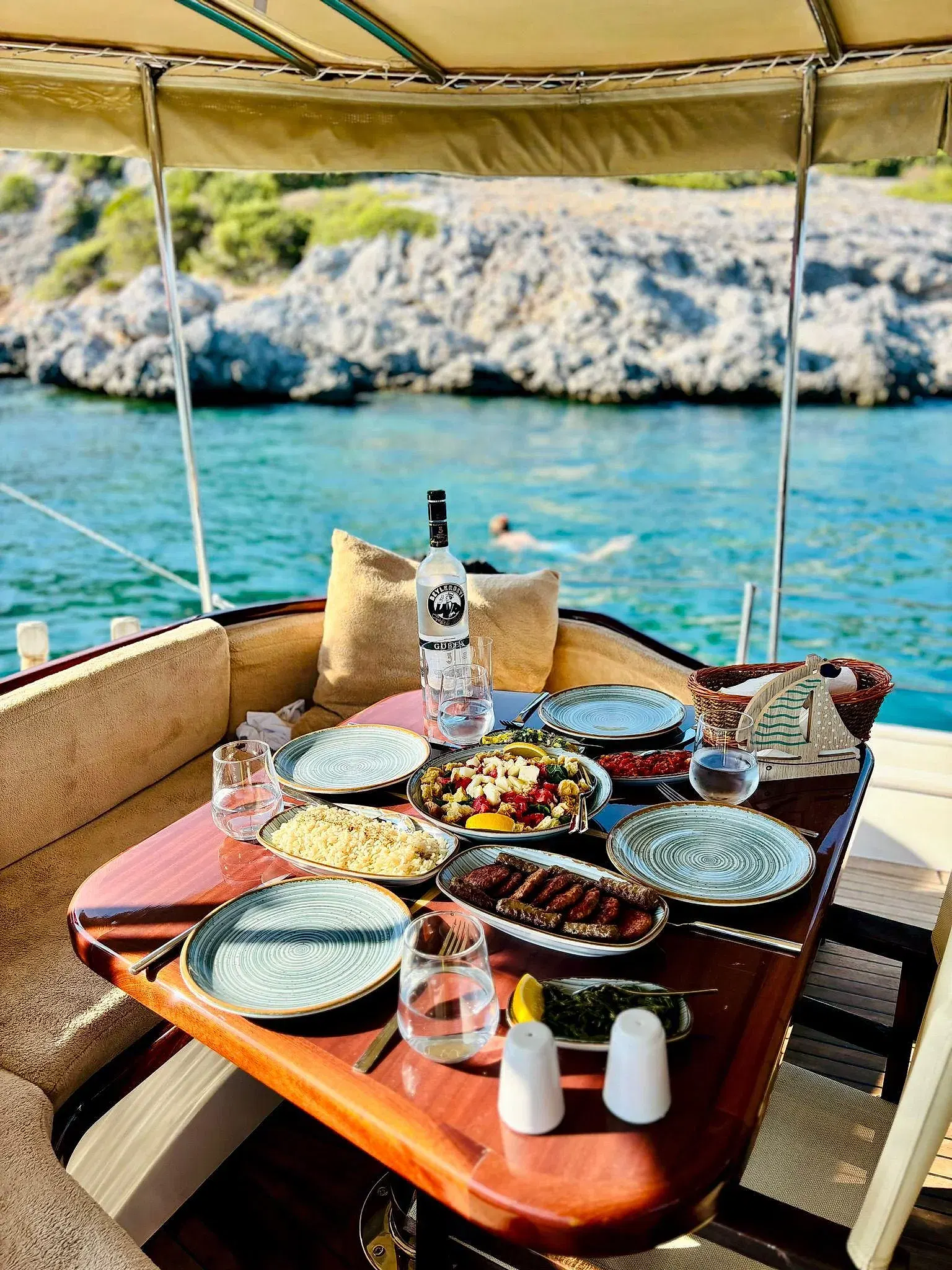 Ebruli, yalnızca şık görünümüyle değil, aynı zamanda konforlu iç mekanı ve düzenli düzeniyle de öne çıkıyor. Geniş oturma alanları, gölgelikli üst güverte ve dinlenme alanları, tur boyunca konfor sağlıyor. Güler yüzlü mürettebatımız, özel Bodrum tekne turu deneyiminizi kusursuz hale getirerek gün boyunca size eşlik edecek.