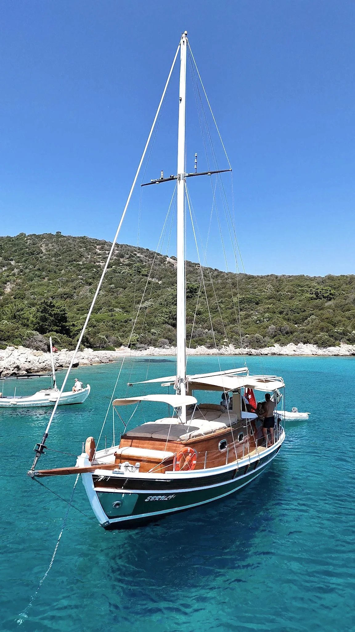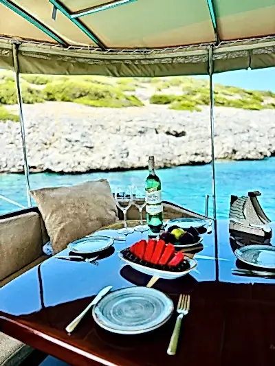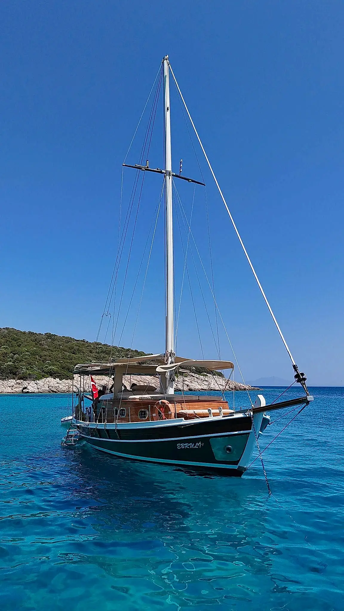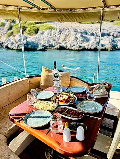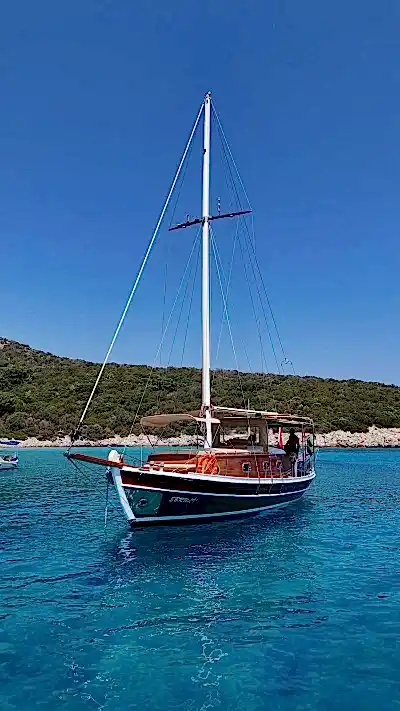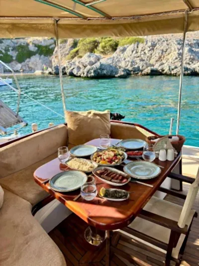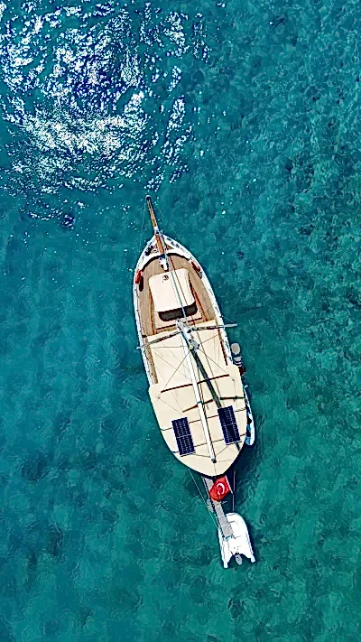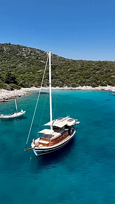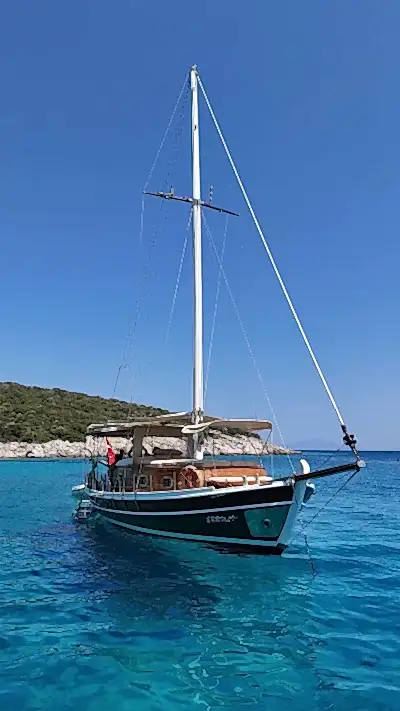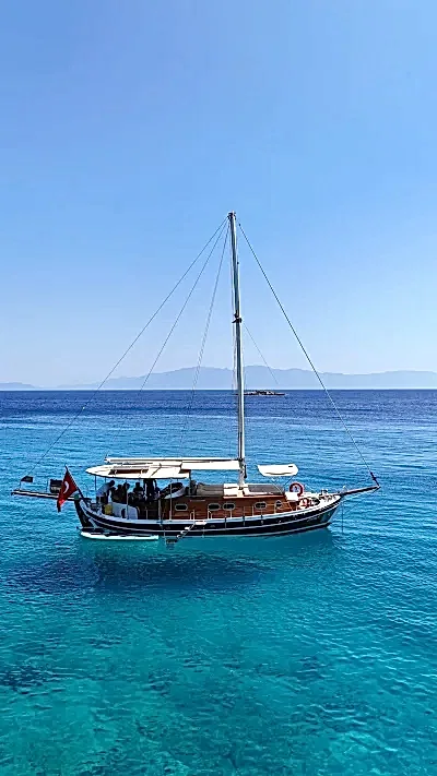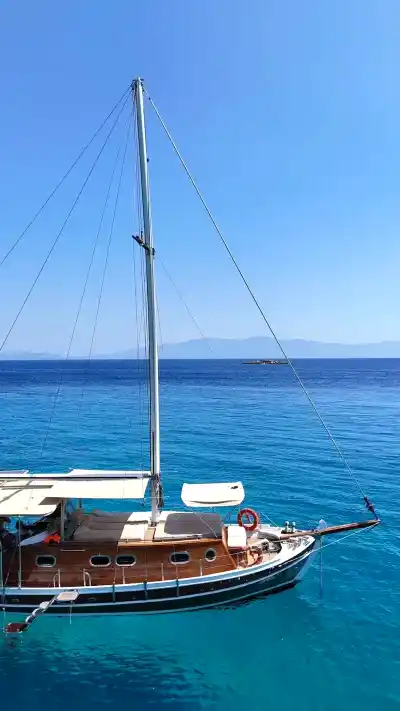 12 metrelik Ebruli, Bodrum'un huzurlu koylarını keşfetmek ve sevdikleriyle keyifli bir gün geçirmek isteyenler için harika bir seçim. Klasik bir Bodrum guletinin sıcak atmosferini yansıtan bu özel tekne, altı kişilik kapasitesiyle küçük gruplara samimi bir deniz deneyimi sunuyor. Geniş güvertesinde güneşlenin, serin Ege sularında yüzün ve gün boyu doğanın ve denizin tadını çıkarın.