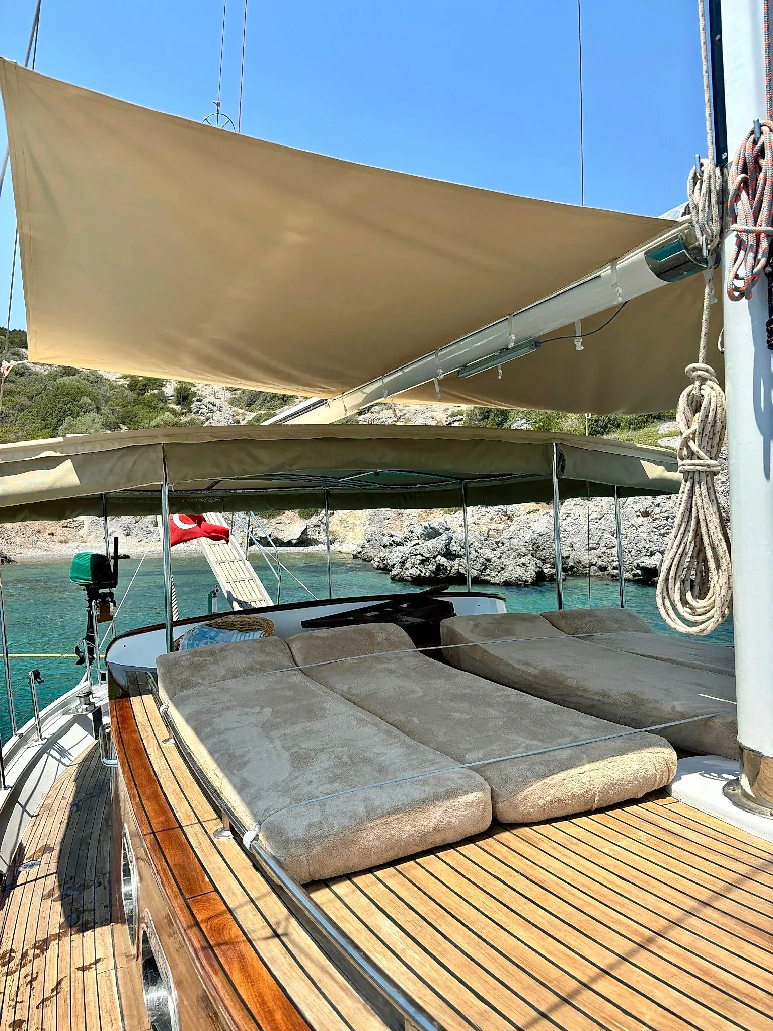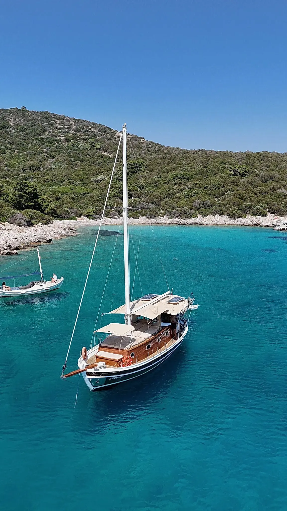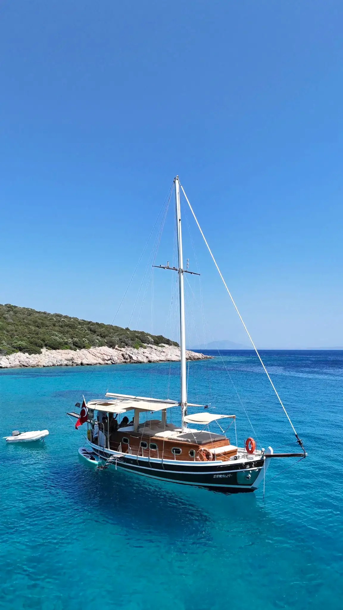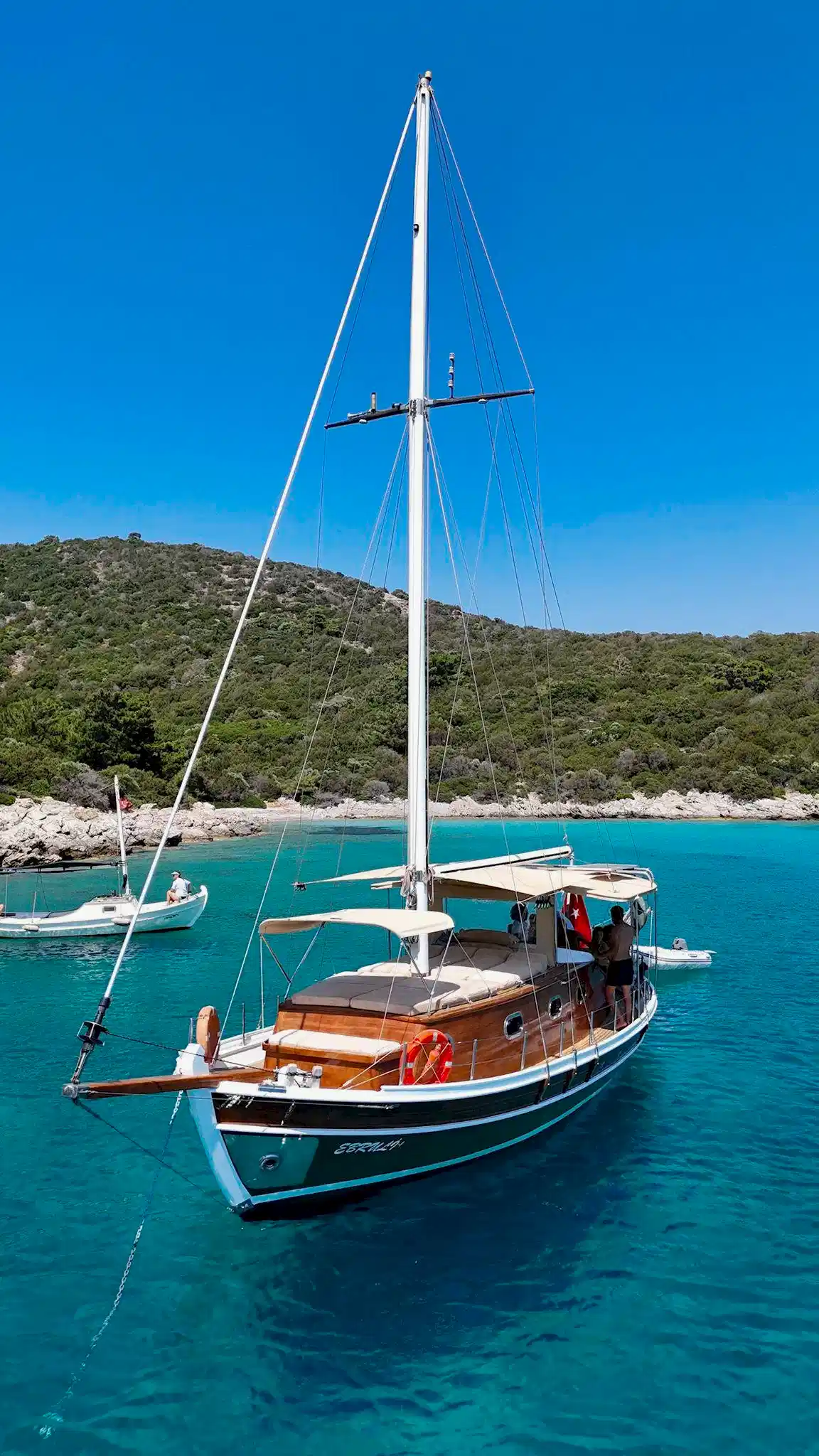 12 metrelik Ebruli, Bodrum'un huzurlu koylarını keşfetmek ve sevdikleriyle keyifli bir gün geçirmek isteyenler için harika bir seçim. Klasik bir Bodrum guletinin sıcak atmosferini yansıtan bu özel tekne, altı kişilik kapasitesiyle küçük gruplara samimi bir deniz deneyimi sunuyor. Geniş güvertesinde güneşlenin, serin Ege sularında yüzün ve gün boyu doğanın ve denizin tadını çıkarın.