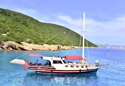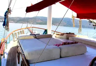 14 metre boyundaki Bodrum yapımı ahşap guletimiz yaz aylarının en konforlu ve eşsiz tatil seçeneğidir. Masmavi Bodrum Denizi ve muhteşem bakir koylarda bu ahşap guletimiz siz değerli müşterilerimize eşlik edecektir.