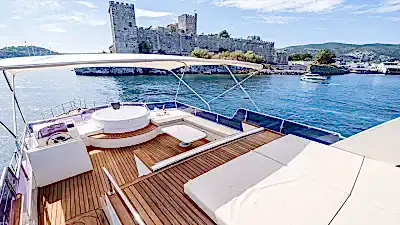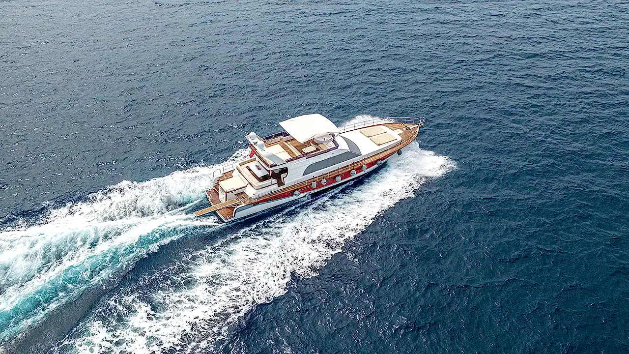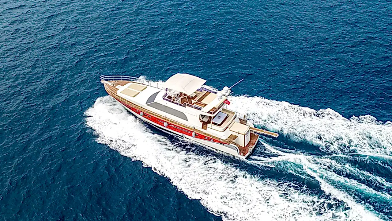 24 metre boyundaki fiber motoryatımız ultra lüks dizaynı ve ev konforu kalitesiyle, mavi yoluculukta siz değerli müşterilerimize eşlik edecektir.