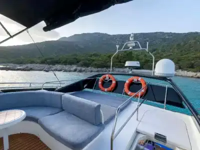 İhtiyaçlarınızı karşılayabileceğiniz tuvalet ve giyinme odaları bulunan ultra lüks fiber motoryatımız kalabalık gruplar için uygundur. Dileyen misafirlerimiz istirahat etmek için kabinleri kullanabilirler. İstediğiniz müzikleri dinleyebileceğiniz bir müzik sistemi yatımızda mevcuttur. Su sporları olanağında bulunan motoryatımız Bodrum'un en eşsiz koylarında sizlere gün boyu hizmet vermeye devam edecektir. Dalış ekipmanlarımızdan yararlanabilir, Bodrum denizinin muhteşem canlarıyla birlikte yüzme olanağını deneyimleyebilirsiniz. Olta takımı ile keyifli dakikalar yaşayabilir farklı tecrübeler edinebilirsiniz.