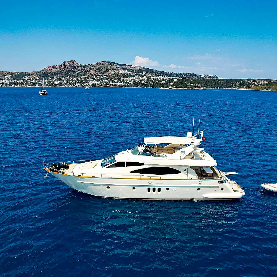 Şık tasarımı ve otel konfurunu sizlere yaşatan yatımız Bodrum'un koylarında limitsiz bir tatil seçeneği sunuyor. Özel yatımız, günlük özel turlarınız, gün batımı turlarınız, evlilik teklifleri, doğum günü kutlamaları ve bekarlığa veda gibi birçok etkinliğe hizmet edebilmektedir. Tekne kapasitesi günlük turlarda 12'dir. Tüm detaylar, profesyonel ekibimiz tarafından sizin için planlanarak benzersiz bir özel yat turu deneyimi sunulmaktadır.