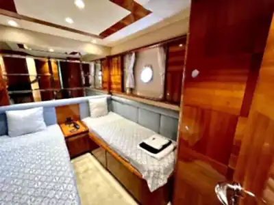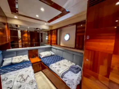 Günlük özel turların yanında, 4 kabini bulunan teknemiz 8 kişilik misafir grubu için kusursuz rahatlık sunan bir mavi yolculuk sunmaktadır. Bodrum özel yat turu için lüks ve konforlu yatımızda lüks bir tatil yaşacaksınız. Denizin rahatlatıcı atmosferinde, güneşin keyfini çıkarırken, doğal ada ve koy manzaraları eşliğinde unutulmaz anlar yaşayabileceksiniz. Gün batımı programlarımız da ise romantik, sakin ve harikulade bir atmosfer sunarak, siz misafirlerimiz için göz alıcı bir ortam sağlamaktadır.