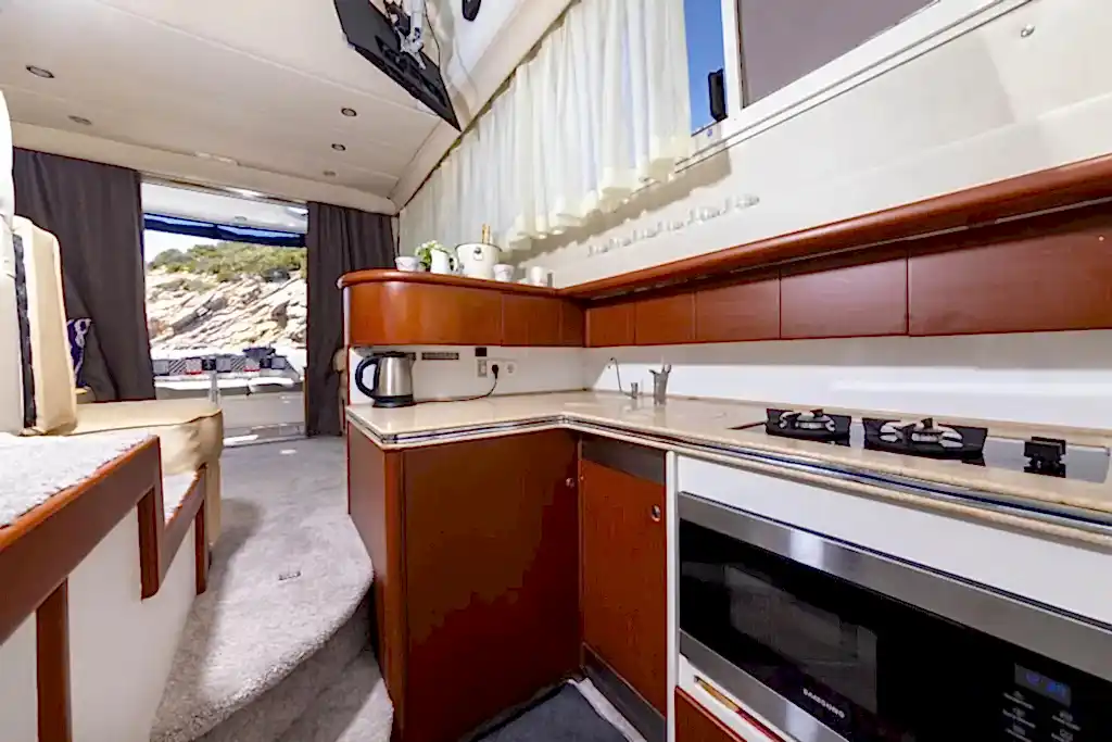 Yaklaşık 14 metre uzunluğundaki Lapina 1 motoryat, kullanışlı güverte alanı ve konforlu iç bölümüyle misafirlerine rahat bir ortam sunar. Teknede bulunan 1 double ve 1 twin kabin, gerektiğinde dinlenmek için ideal alanlar sağlar. Banyo, duş ve mutfak gibi donanımlar sayesinde Bodrum özel tekne turu sırasında denizde geçirdiğiniz zaman konforlu bir deneyime dönüşür.