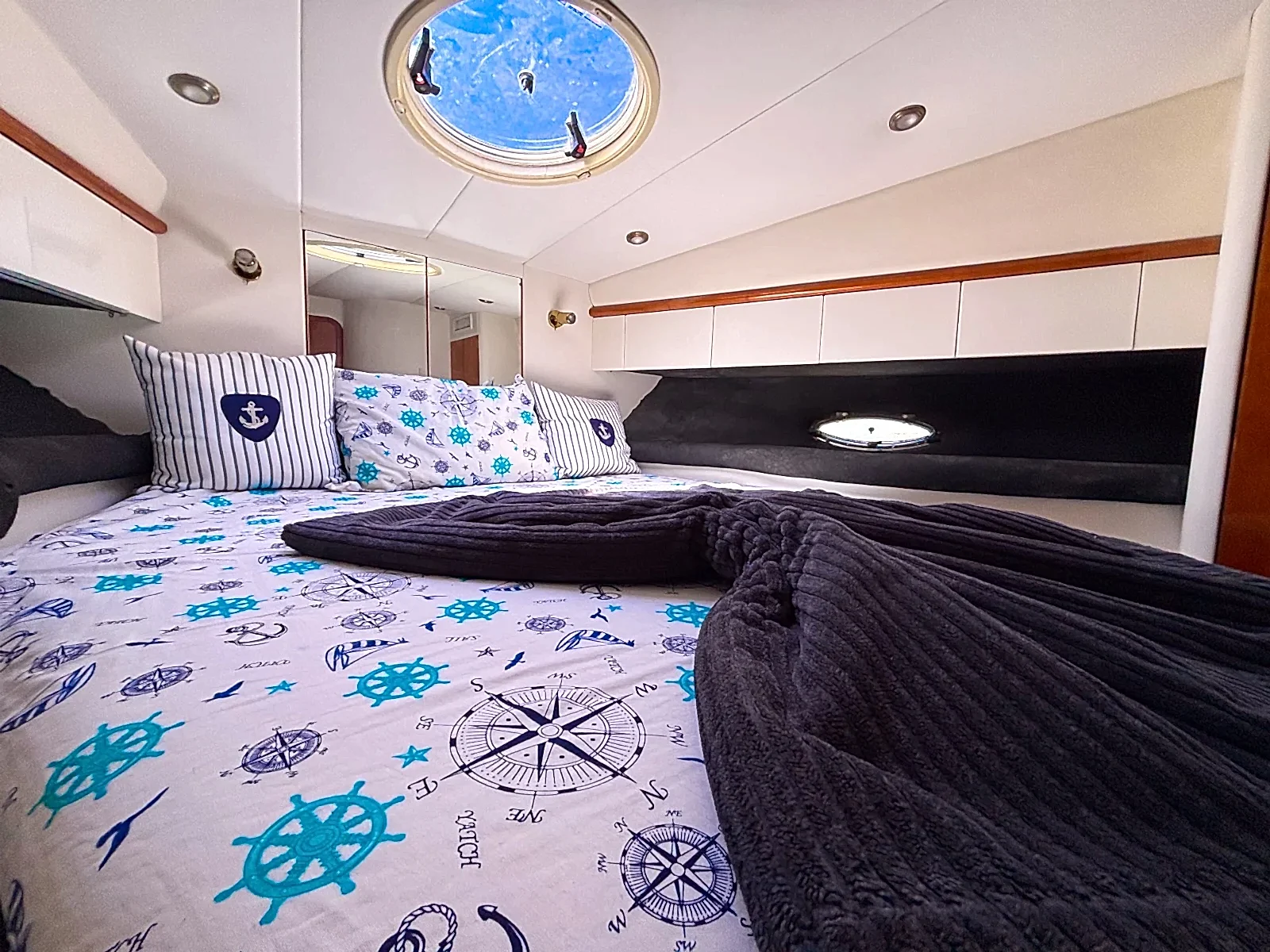 Yaklaşık 14 metre uzunluğa sahip olan bu lüks fiber yat, modern iç tasarımı ve ferah yaşam alanları ile evinizdeki rahatlığı aratmaz. Küçük gruplar için ideal olan yatımızda, kabinler dileyen konuklar için dinlenme alanı olarak kullanılabilirken, giyinme odaları ve tuvalet gibi temel ihtiyaç alanları da mevcuttur.