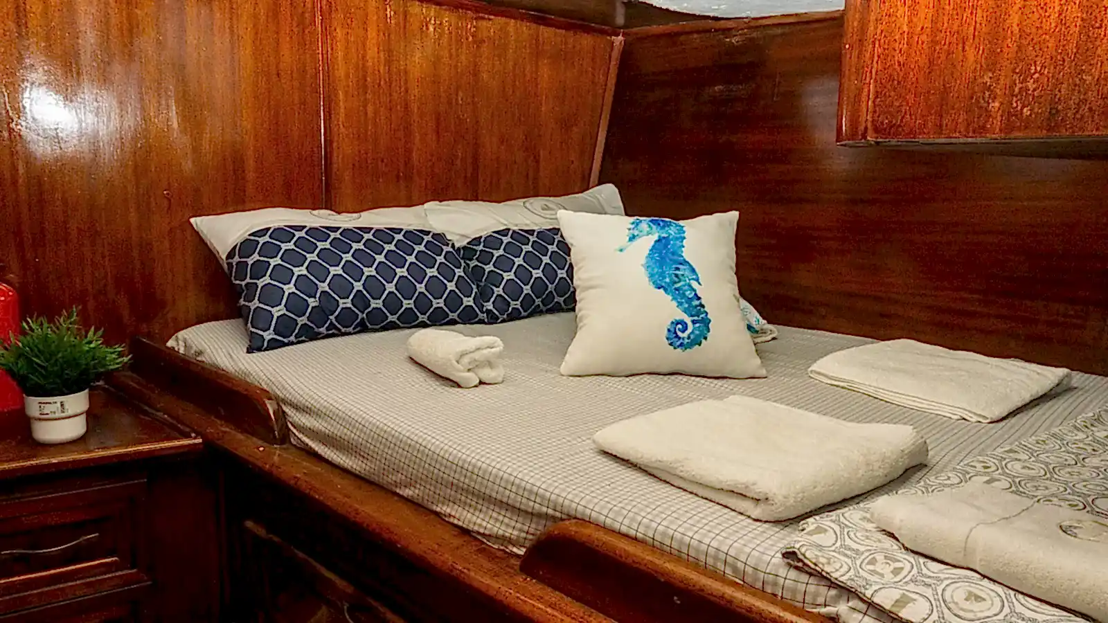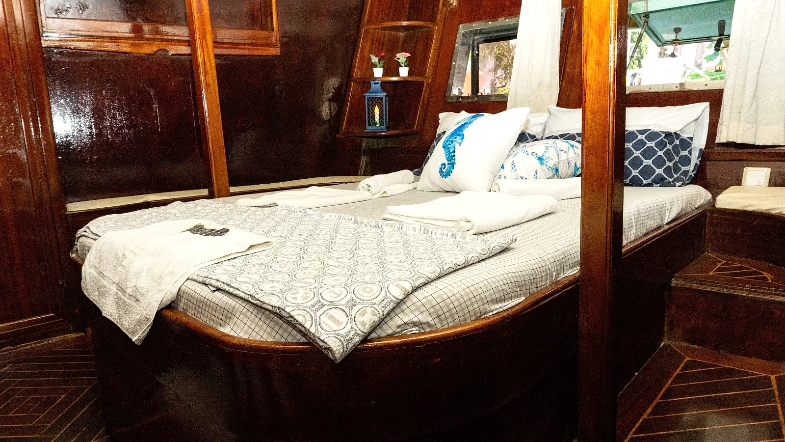 Toplam 6 kabini ve kabinlerde çitf kişilik yataklar mevcuttur. Her kabinin kendisine ait tuvalet ve duşu bulunmaktadır. İstediğiniz müzikleri dinleyebileceğiniz bir müzik sistemimiz mevcuttur. Wifi olanağı da bulunan teknemiz Bodrum'un en eşsiz koylarında sizlere hafta ve gün boyu hizmet vermeye devam edecektir. Dalış ekipmanlarımızdan yararlanabilir, Bodrum Denizinin muhteşem canlılarıyla birlikte yüzme olanağını deneyimleyebilirsiniz. Olta takımı ile keyifli dakikalar yaşayabilir farklı tecrübeler edinebilirsiniz.