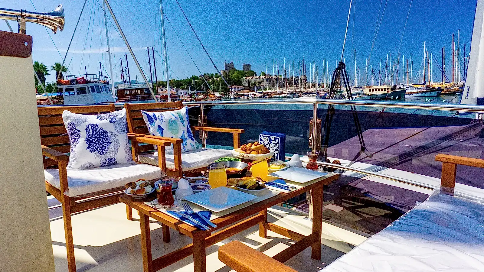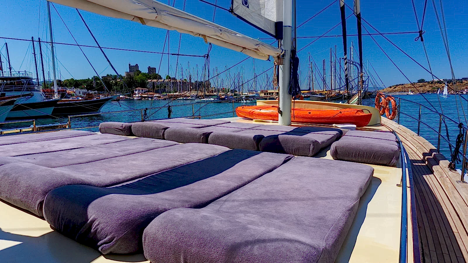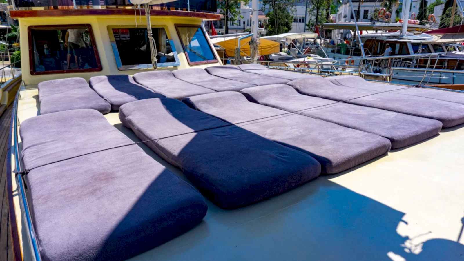 Rahat edebileceğiniz ve gün boyu güneşin tadını çıkarabileceğiniz oldukça yumuşak minderlerimizde Bodrum Mavi Turunu konforlu bir şekilde sürdürebilirsiniz. Arayın, Yerinizi Ayırtın, Ücreti Tur Günü Ödeyin!