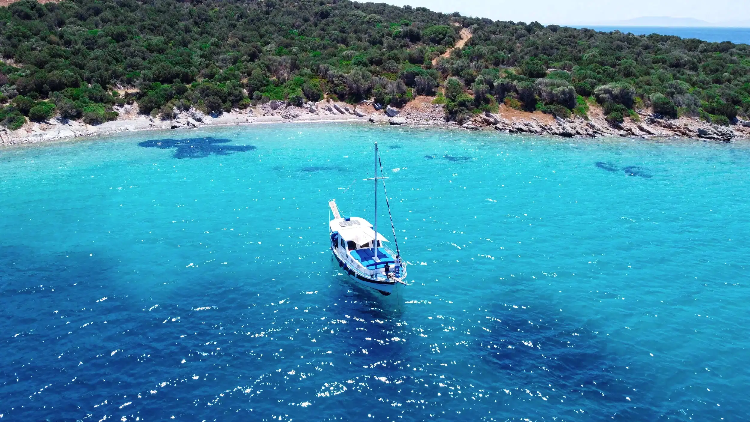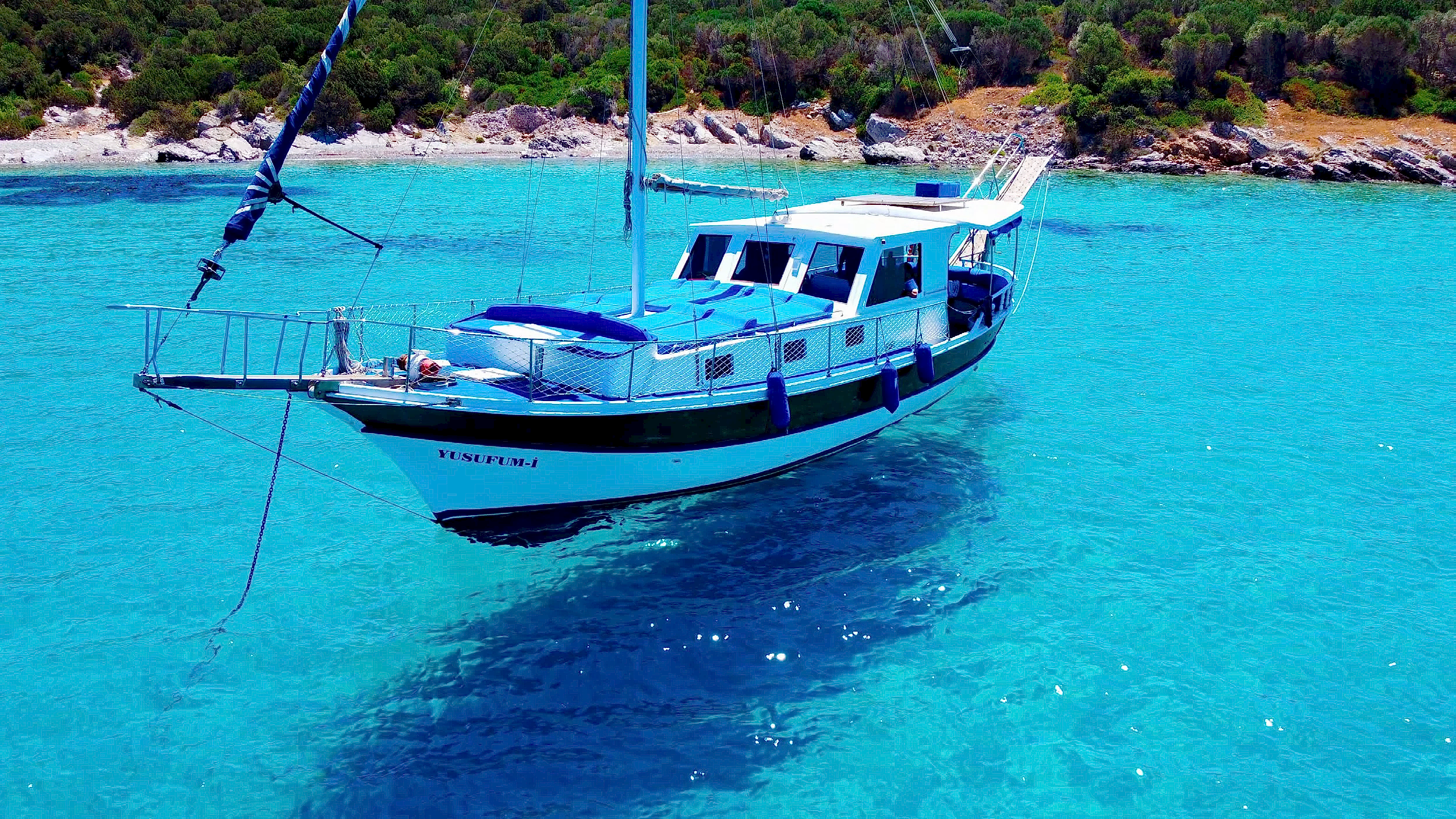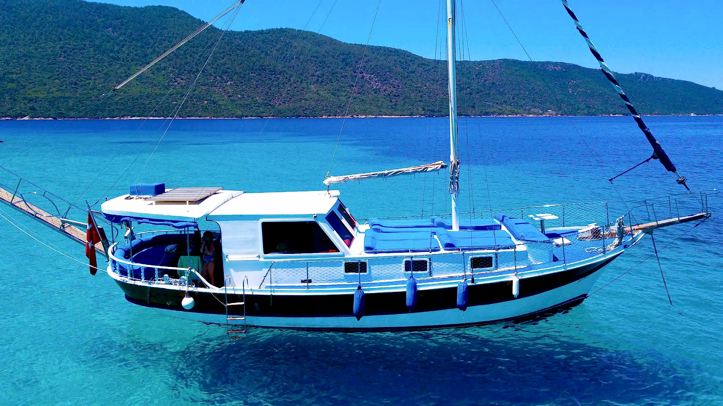 15 metre boyundaki Bodrum yapımı ahşap guletimiz yaz aylarının en konforlu ve eşsiz tatil seçeneğidir. Masmavi Bodrum Denizi ve muhteşem bakir koylarda bu ahşap guletimiz siz değerli müşterilerimize eşlik edecektir.